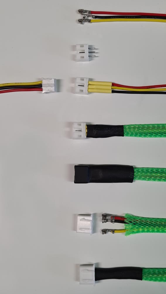 ~ Schrumpfschlauch für den JST-XH-Stecker auf den Kabelschutz ziehen
